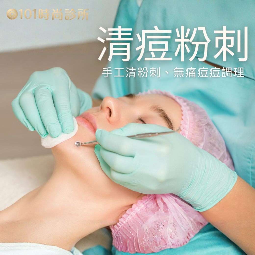 - 清理粉刺:低痛感,沿毛孔方向推出頑固粉刺/白頭,治療後微紅為正常現象。