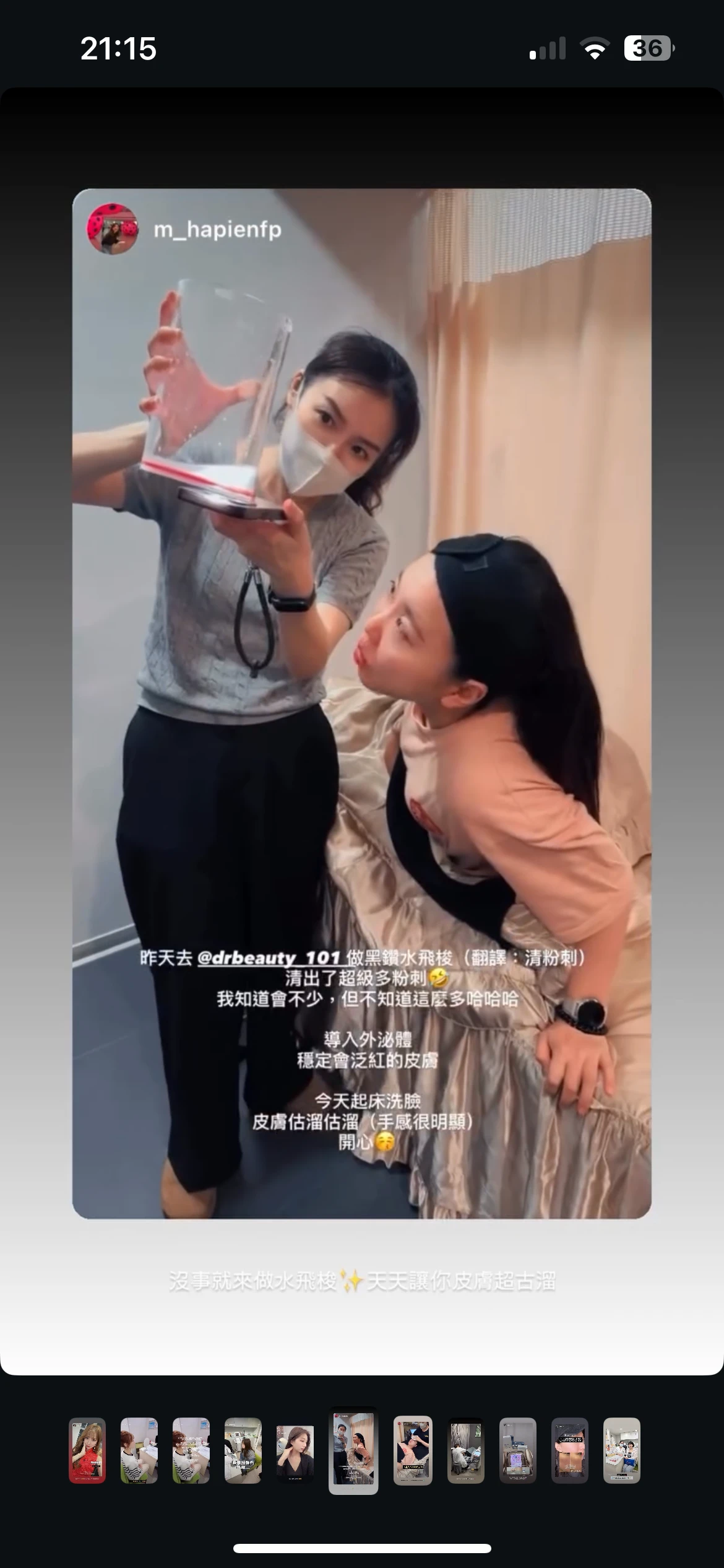 到潤豐盈美學做黑鑽水飛梭(翻譯:無痛清粉刺) 真的清出了超級多粉刺 我知道會不少,但不知道這麼多哈哈哈 一開始會卸妝 接著開始清粉刺 以前人工擠粉刺很痛 現在用機器舒服很多 矽膠材質接觸皮膚 矽膠探頭不容易引起過敏 深度清潔軟化角質 搭配外泌體導入 超級冰涼很舒服 舒緩穩定會泛紅的皮膚 美容師給我看清出來的粉刺 滿滿的戰利品!!! 隔天起床洗臉 皮膚估溜估溜(手感很明顯) 開心~~~